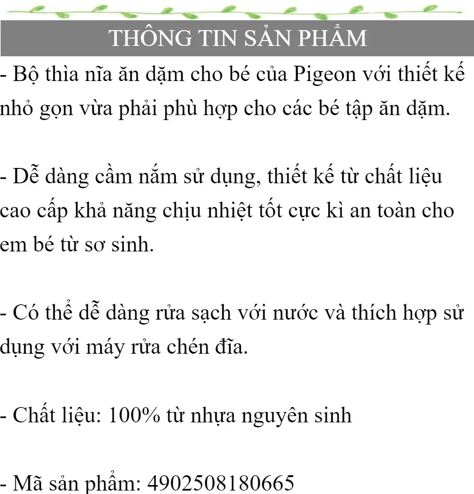 BỘ THÌA NĨA ĂN DẶM CHO BÉ TỪ 12 THÁNG TUỔI PIGEON - HÀNG NHẬT NỘI ĐỊA, CHỊU NHIỆT TỐT AN TOÀN CHO BÉ SƠ SINH