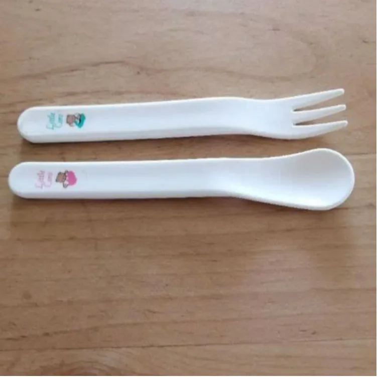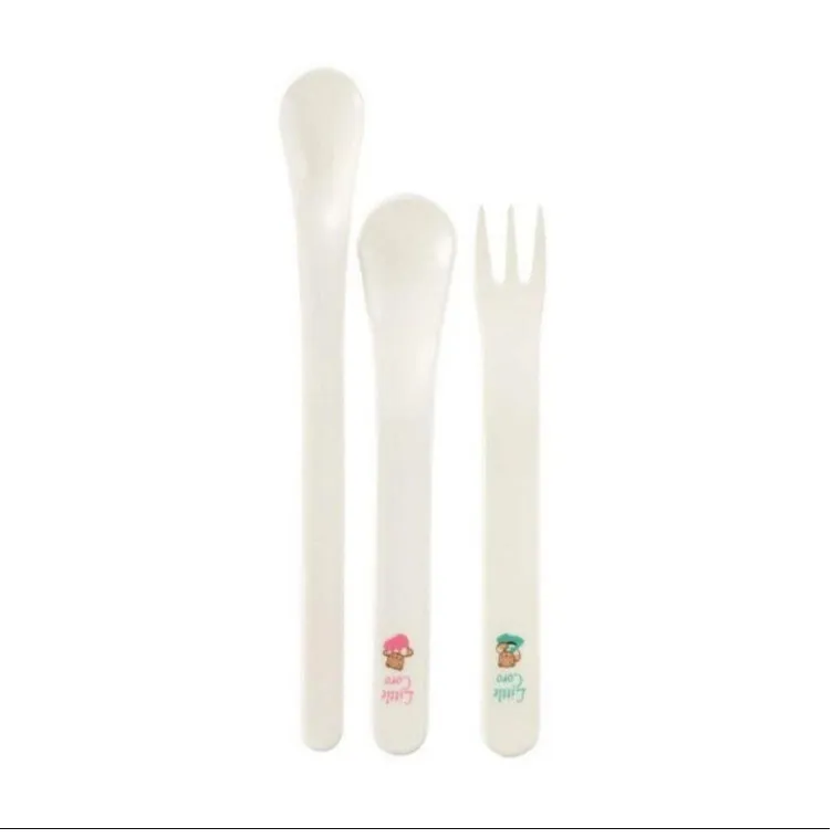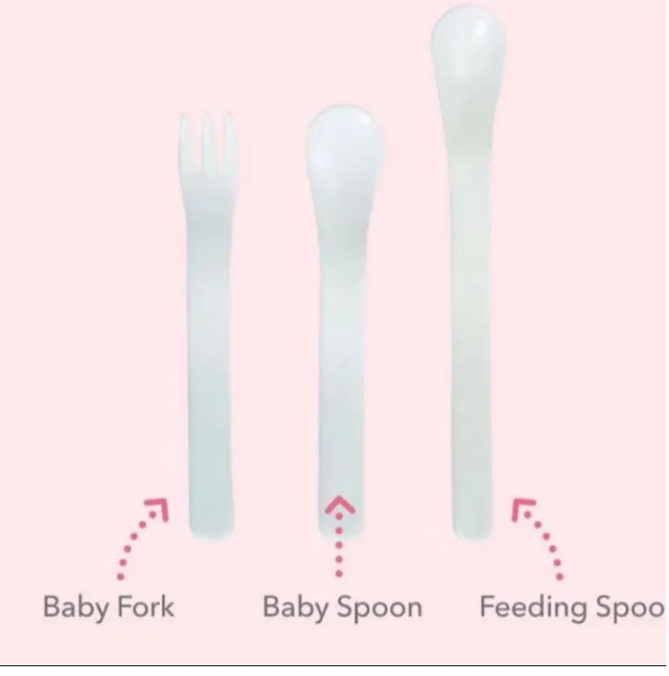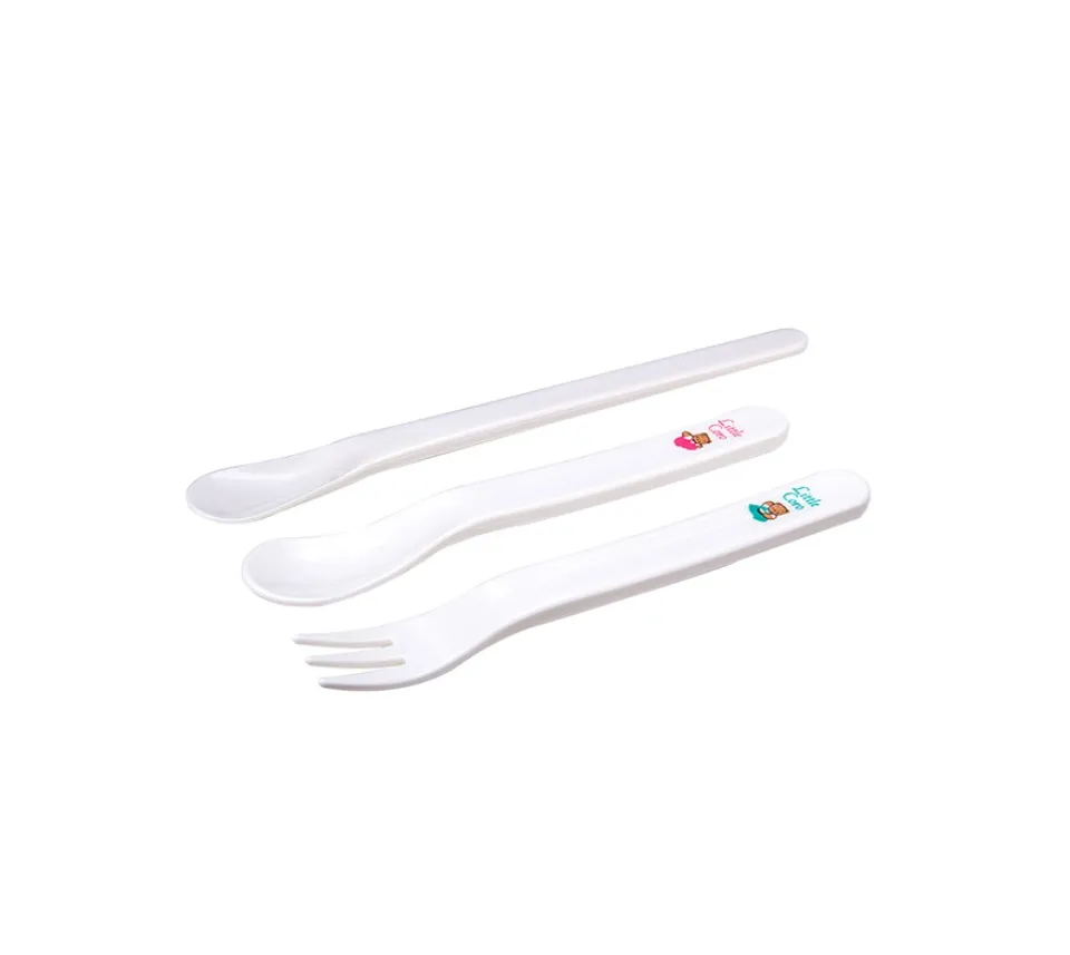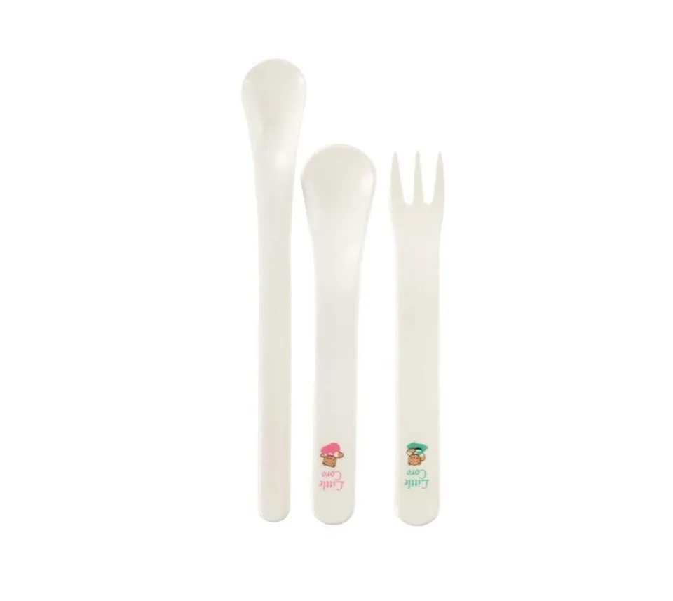 - Bộ thìa và nĩa có độ rộng tầm cỡ 2cm, độ rộng phù hợp với lượng thức ăn và khuôn miệng của các bé nhỏ nên bố mẹ không lo bé bị hốc hay mắc nghẹn.