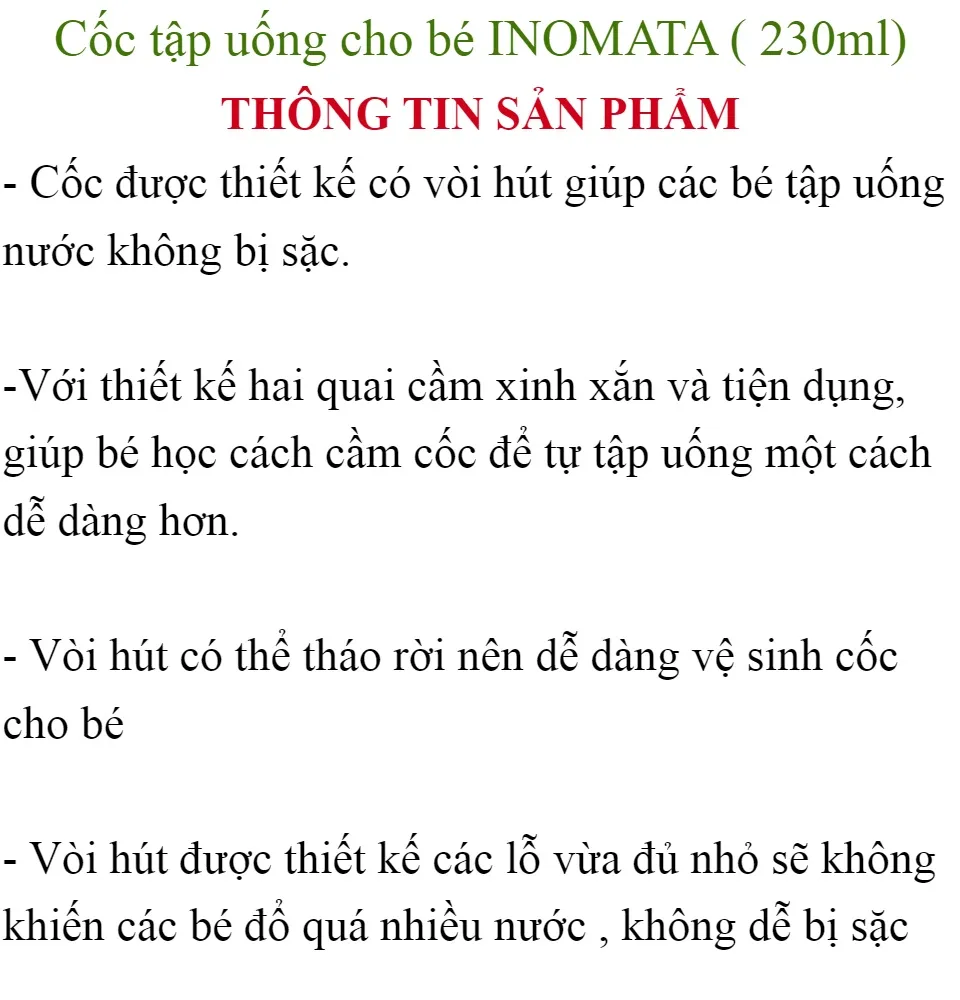 CỐC TẬP UỐNG CHO BÉ CÓ VÒI HÚT INOMATA - HÀNG NỘI ĐỊA NHẬT
