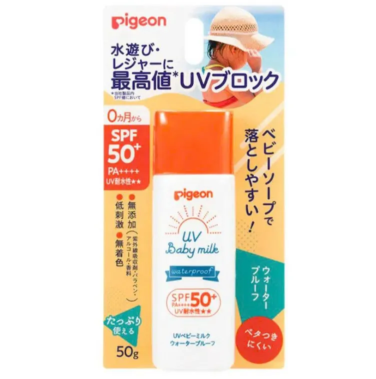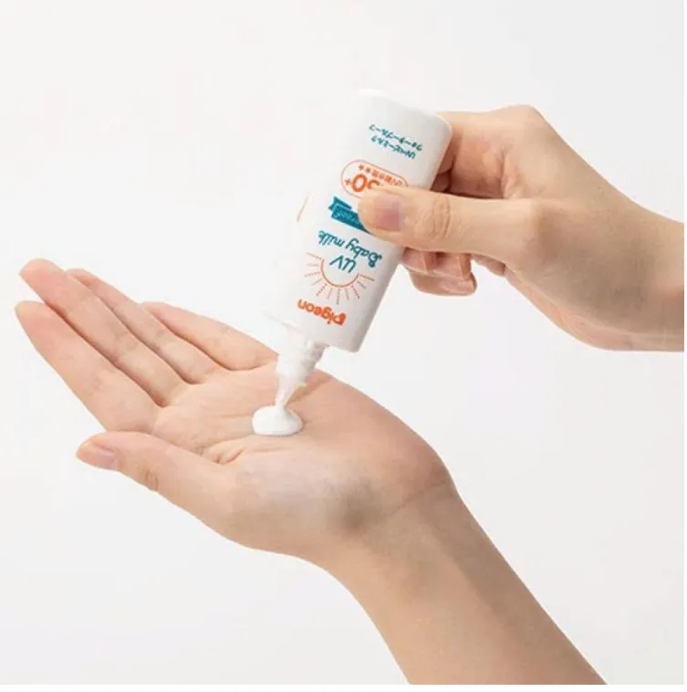 Kem chống nắng cho bé 3 tháng Pigeon Baby Milk có khả năng chống nước, bảo vệ da bé toàn diện khi ra nắng hay đi bơi.