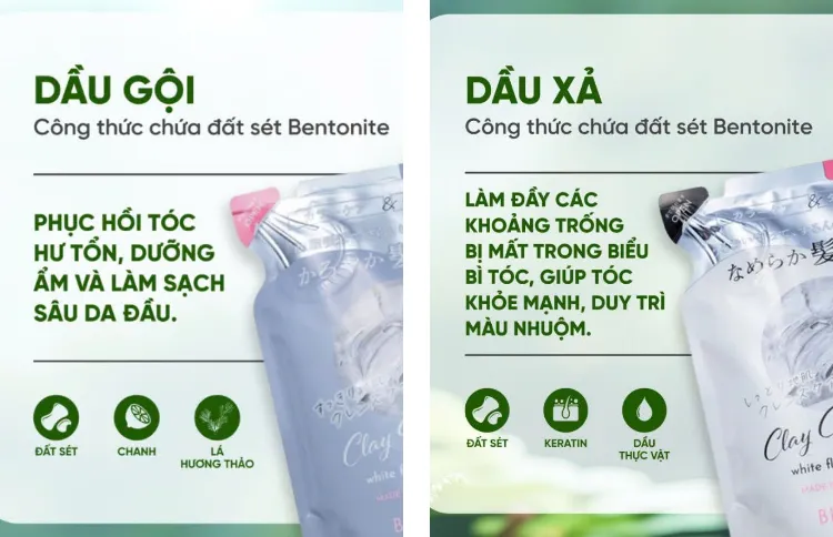 - Trong sản phẩm có chứa đất sét Bentonite có tác dụng giúp loại bỏ các bã nhờn dư thừa, từ đó giúp làm sạch da đầu.