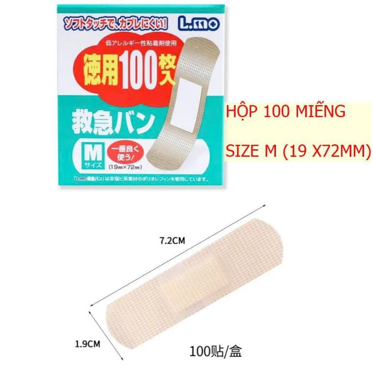 +HỘP 100 MIẾNG SIZE M: 1.9 x 7.2cm. Mã vạch sản phẩm: 4955574781526