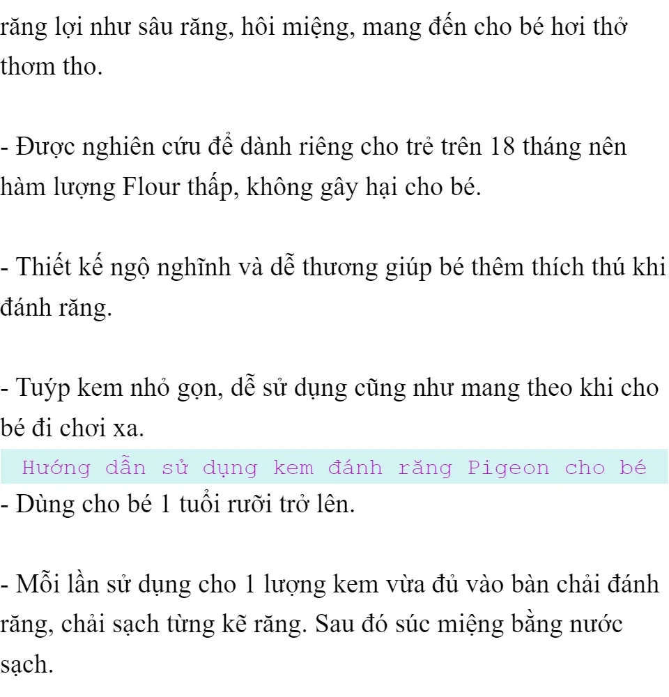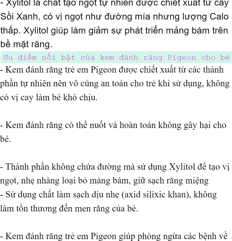 KEM ĐÁNH RĂNG CHO BÉ 18 THÁNG TUỔI PIGEON (VỊ XYLITOL - VỊ NGỌT TỰ NHIÊN)
