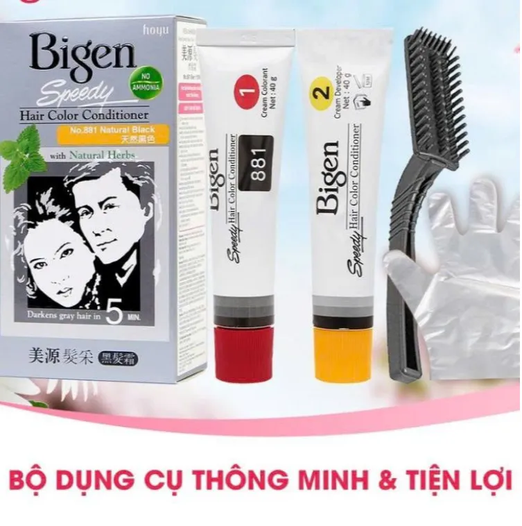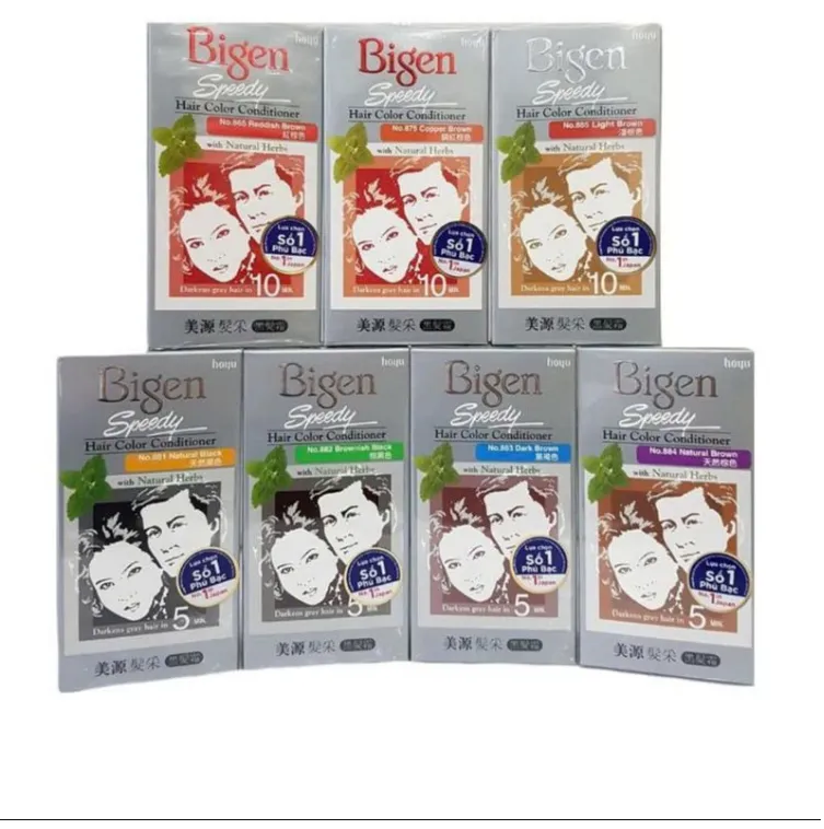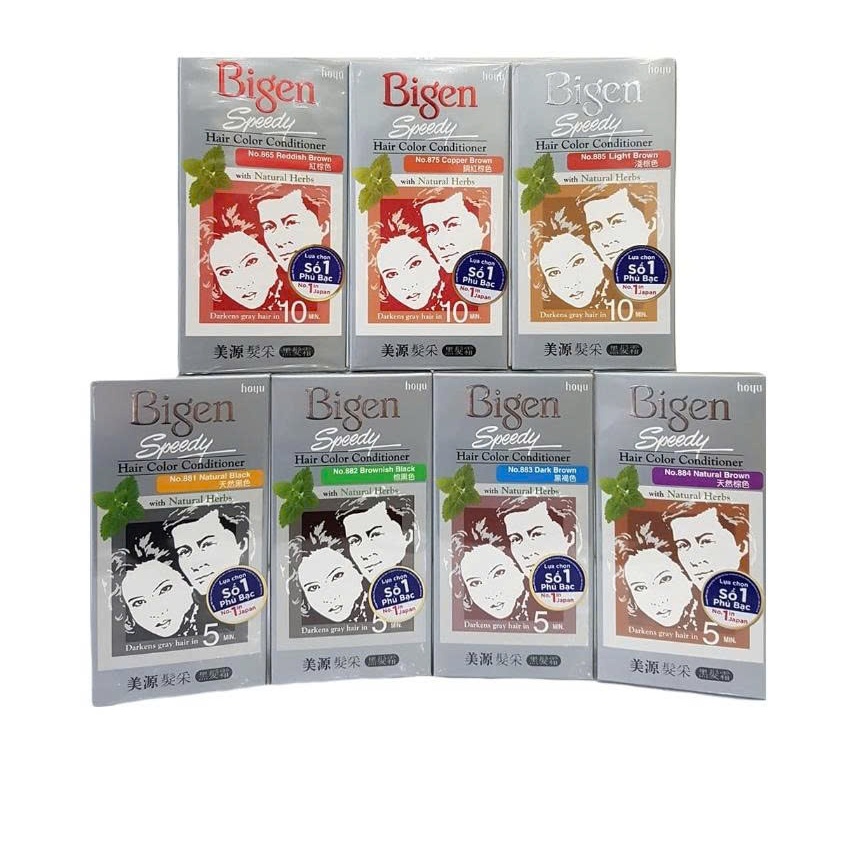 -Kem nhuộm tóc Bigen Speedy Hair Color Conditioner công thức đặc biệt với tỷ lệ hạt màu tối cao giúp phủ bạc tự nhiên hoàn hảo, kết hợp cùng 6 loại dưỡng chất thảo dược sẽ mang đến cho bạn một mái tóc đều màu, suôn mềm, óng mượt sau khi nhuộm.