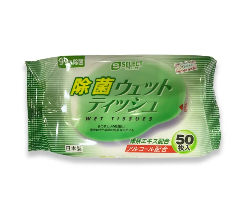 - Khăn ướt khử trùng S Select Nhật Bản giúp làm sạch da 99%, đồng thời bổ sung độ ẩm phù hợp dưỡng mềm mịn da.