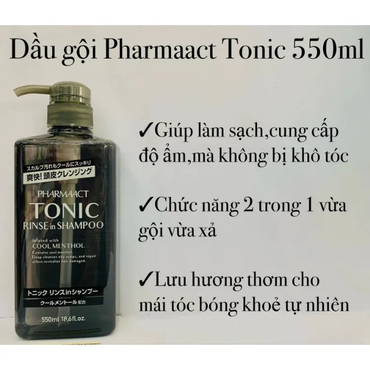 - Dầu gội cho nam Tonic Pharmaact giúp ngăn ngừa gầu và ngứa da đầu mà không làm khô tóc. - Sản phẩm dầu gội và xả dành cho nam Tonic Pharmaact giúp làm sạch, cung cấp độ ẩm, và lưu lại hương thơm cho mái tóc và làn da khỏe mạnh. - Dầu gội nam Tonic Pharmaact vô cùng tiện lợi bởi chức năng 2 trong 1 vừa gội sạch vừa xả thơm mát, dưỡng tóc bóng khỏe tự nhiên. - Dầu gội dành cho nam Tonic Pharmaact có thành phần bạc hà tạo cảm giác mát lạnh khi gội, mang đến tin thần sảng khoái. - Dầu gội Tonic có mùi thơm nam tính, quyến rũ, khiến cho người khác phải chú ý tới bạn ngay từ lúc đầu tiếp xúc. - Lưu ý: mẫu mới từ tháng 5/2022 có sự thay đổi và thể tích chai 550ml.