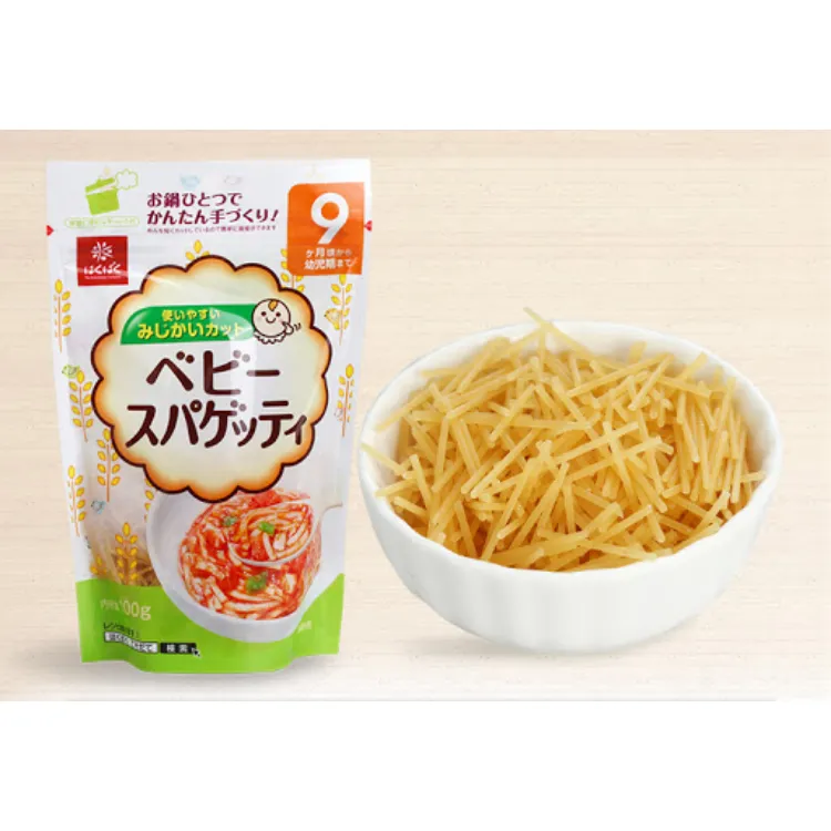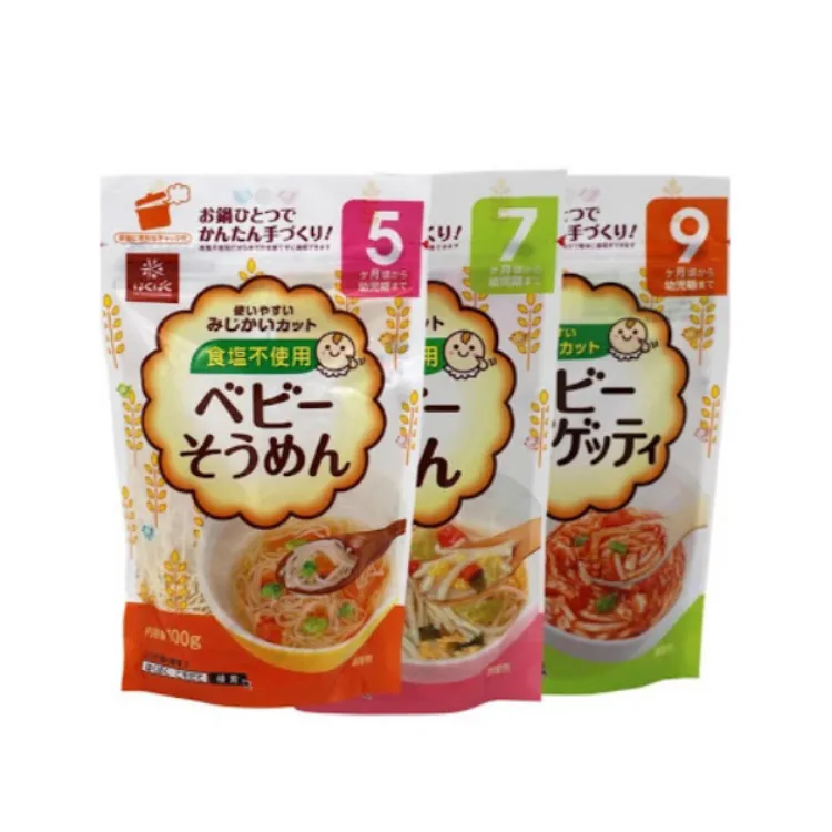 +Mì somen cho bé 9 tháng (mã vạch sản phẩm: 4902571203957): sợi mì có cỡ to hơn loại 5 tháng và 7 tháng, thành phần bột làm nên sợi mì giống mì ý spaghetti.