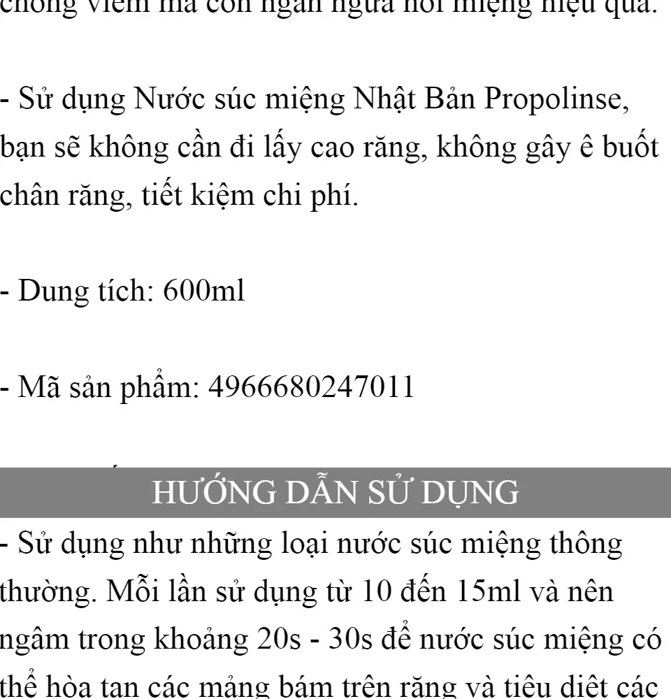 {"id":3672419,"name":"NƯỚC SÚC MIỆNG PROPOLINSE DÙNG CHO NGƯỜI HÚT THUOC LÁ CHAI 600ML - HÀNG NHẬT NỘI ĐỊA","desc":"","content":"<h2 style=\"margin-left:0px;\">Mô tả sản phẩm<\/h2><figure class=\"image\"><img src=\"https:\/\/img.lazcdn.com\/g\/shop\/5ead3066842436f84496d69ae3b7eb62.jpeg_2200x2200q80.jpg_.webp\"><\/figure><figure class=\"image\"><img src=\"https:\/\/img.lazcdn.com\/g\/shop\/39a36fe76f33c70b4ea511e16083e7d7.jpeg_2200x2200q80.jpg_.webp\"><\/figure><figure class=\"image\"><img src=\"https:\/\/img.lazcdn.com\/g\/shop\/f3210b969d80a9407b91bae02bea67a7.jpeg_2200x2200q80.jpg_.webp\"><\/figure><figure class=\"image\"><img src=\"https:\/\/img.lazcdn.com\/g\/shop\/9dcc99336dcfc54185da01480a7e206a.jpeg_2200x2200q80.jpg_.webp\"><\/figure><figure class=\"image\"><img src=\"https:\/\/img.lazcdn.com\/g\/shop\/772fae44b84308424e36afb711f0355c.jpeg_2200x2200q80.jpg_.webp\"><\/figure><figure class=\"image\"><img src=\"https:\/\/img.lazcdn.com\/g\/shop\/df324791eb272b91701df079a1e3a417.jpeg_2200x2200q80.jpg_.webp\"><\/figure><figure class=\"image\"><img src=\"https:\/\/img.lazcdn.com\/g\/shop\/e6d3d4d80906c5e481970396cee1f396.jpeg_2200x2200q80.jpg_.webp\"><\/figure><figure class=\"image\"><img src=\"https:\/\/img.lazcdn.com\/g\/shop\/9dfacb3f34e84b588fbf47d72086b18d.jpeg_2200x2200q80.jpg_.webp\"><\/figure><figure class=\"image\"><img src=\"https:\/\/img.lazcdn.com\/g\/shop\/56c9f04079acb8a4559af53ae963e290.jpeg_2200x2200q80.jpg_.webp\"><\/figure><figure class=\"image\"><img src=\"https:\/\/img.lazcdn.com\/g\/shop\/b79aa7925ffcc2b4dfb05d03290dbd20.jpeg_2200x2200q80.jpg_.webp\"><\/figure><figure class=\"image\"><img src=\"https:\/\/img.lazcdn.com\/g\/shop\/211abc5e68e34c00a3f869827aa17b80.jpeg_2200x2200q80.jpg_.webp\"><\/figure><figure class=\"image\"><img src=\"https:\/\/img.lazcdn.com\/g\/shop\/595913da77b2a2f0420e9ee4bf2a4a0c.jpeg_2200x2200q80.jpg_.webp\"><\/figure><p style=\"margin-left:0px;\"> <\/p>","image_url":"https:\/\/konni39thuduc.com\/datafiles\/89665\/upload\/images\/shopee\/2026-04-14\/de2a7d1df685aa07e3d3c44e6765833a.jpg?t=1776147231","image_thumb_url":"https:\/\/konni39thuduc.com\/datafiles\/89665\/upload\/thumb_images\/shopee\/2026-04-14\/de2a7d1df685aa07e3d3c44e6765833a.jpg?t=1776151833","tags":[],"count_view":2,"seo_name":"nuoc-suc-mieng-propolinse-dung-cho-nguoi-hut-thuoc-la-chai-600ml-hang-nhat-noi-dia","date_update":1776481108,"date_created_format":"","meta_title":"","meta_desc":"","meta_keyword":"","sku":"4966680247011","code":"4966680247011","rate":0,"image_2_url":"https:\/\/konni39thuduc.com\/datafiles\/89665\/upload\/images\/shopee\/2026-04-14\/fe67e265cb34486eeb769ae62c06f9bf.jpg","image_2_thumb_url":"https:\/\/konni39thuduc.com\/datafiles\/89665\/upload\/\/thumb_images\/shopee\/2026-04-14\/fe67e265cb34486eeb769ae62c06f9bf.jpg","time_promotion":false,"date_sale":[],"status_order":5,"variant_options":[],"variants":[{"status_inventory":1,"status_order":5,"id":890973,"product_id":3672419,"sku":"4966680247011","barcode":"","quantity":0,"quantity_alert":0,"price":201000,"price_discount":0,"images":[],"display_order":0,"is_point":"","point":"","vat":"","weight":"","variant_options":[],"variant_option_name":"","image":"","price_final":201000,"price_final_format":"201.000 đ","price_format":"201.000 đ","price_discount_format":"0 đ","percent_discount":0,"date_sale":[],"percent_discount_format":"- 0%","price_discount_final_format":"201.000 đ"}],"variantIdDefault":890973,"image_list":[{"image_url":"https:\/\/konni39thuduc.com\/datafiles\/89665\/upload\/images\/shopee\/2026-04-14\/de2a7d1df685aa07e3d3c44e6765833a.jpg","image_thumb_url":"https:\/\/konni39thuduc.com\/datafiles\/89665\/upload\/\/thumb_images\/shopee\/2026-04-14\/de2a7d1df685aa07e3d3c44e6765833a.jpg"},{"image_url":"https:\/\/konni39thuduc.com\/datafiles\/89665\/upload\/images\/shopee\/2026-04-14\/fe67e265cb34486eeb769ae62c06f9bf.jpg","image_thumb_url":"https:\/\/konni39thuduc.com\/datafiles\/89665\/upload\/\/thumb_images\/shopee\/2026-04-14\/fe67e265cb34486eeb769ae62c06f9bf.jpg"},{"image_url":"https:\/\/konni39thuduc.com\/datafiles\/89665\/upload\/images\/shopee\/2026-04-14\/0ff8231bcff7a5ffc9c8ea64b8290ab5.jpg","image_thumb_url":"https:\/\/konni39thuduc.com\/datafiles\/89665\/upload\/\/thumb_images\/shopee\/2026-04-14\/0ff8231bcff7a5ffc9c8ea64b8290ab5.jpg"},{"image_url":"https:\/\/konni39thuduc.com\/datafiles\/89665\/upload\/images\/shopee\/2026-04-14\/87f857160676646327d378e6c570f942.jpg","image_thumb_url":"https:\/\/konni39thuduc.com\/datafiles\/89665\/upload\/\/thumb_images\/shopee\/2026-04-14\/87f857160676646327d378e6c570f942.jpg"},{"image_url":"https:\/\/konni39thuduc.com\/datafiles\/89665\/upload\/images\/shopee\/2026-04-14\/007785e7465c071c08567decad746a18.jpg","image_thumb_url":"https:\/\/konni39thuduc.com\/datafiles\/89665\/upload\/\/thumb_images\/shopee\/2026-04-14\/007785e7465c071c08567decad746a18.jpg"},{"image_url":"https:\/\/konni39thuduc.com\/datafiles\/89665\/upload\/images\/shopee\/2026-04-14\/67ad4008658f3fb518d8c6cd5c146a40.jpg","image_thumb_url":"https:\/\/konni39thuduc.com\/datafiles\/89665\/upload\/\/thumb_images\/shopee\/2026-04-14\/67ad4008658f3fb518d8c6cd5c146a40.jpg"},{"image_url":"https:\/\/konni39thuduc.com\/datafiles\/89665\/upload\/images\/shopee\/2026-04-14\/465ccca579359a5e46920d6aa16ac5aa.jpg","image_thumb_url":"https:\/\/konni39thuduc.com\/datafiles\/89665\/upload\/\/thumb_images\/shopee\/2026-04-14\/465ccca579359a5e46920d6aa16ac5aa.jpg"}],"product_articles":[],"total_point_review":0,"link_youtube":"https:\/\/www.youtube.com\/embed\/","video_url":"","booking_url":"javascript:void(0)","file_url":"","config_panorama":[],"brand_name":"NoBrand","qr_code":"https:\/\/konni39thuduc.com\/nuoc-suc-mieng-propolinse-dung-cho-nguoi-hut-thuoc-la-chai-600ml-hang-nhat-noi-dia","promotion_name":"","status_inventory_value":1,"status_inventory":"Còn hàng","price":false,"price_final":"201.000 đ","percent_discount":false,"price_discount":false,"company_logo":"https:\/\