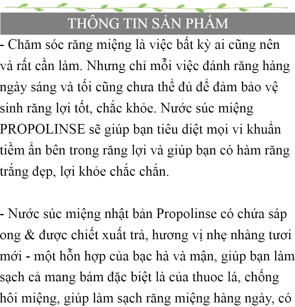 NƯỚC SÚC MIỆNG PROPOLINSE DÙNG CHO NGƯỜI HÚT THUOC LÁ CHAI 600ML - HÀNG NHẬT NỘI ĐỊA
