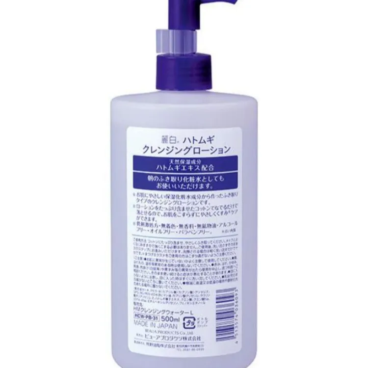 - Với chiết xuất từ hạt ý dĩ giàu vitamin E và vitamin nhóm B như B1, B2, B12, nước tẩy trang Hatomugi Cleansing Lotion giúp làm sạch sâu mà không gây khô da, hạn chế tình trạng bít tắc lỗ chân lông.