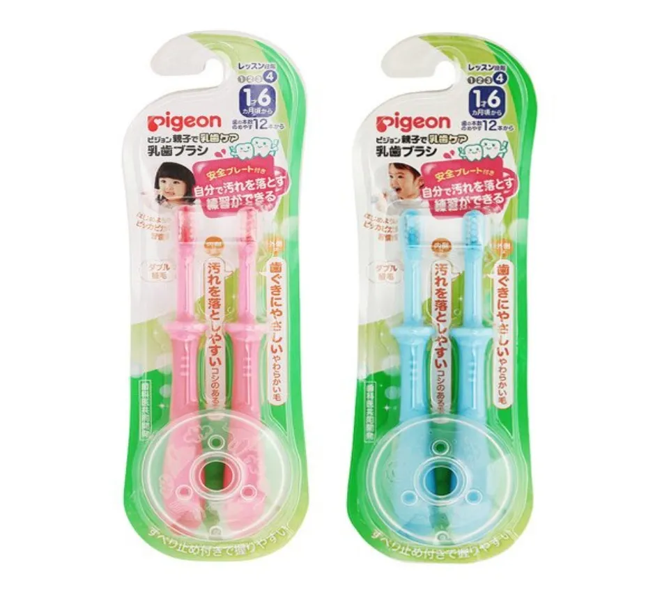- Bàn chải đánh răng Pigeon set 2 cho bé là sản phẩm giúp bé vệ sinh những chiếc răng sữa mới nhú của mình một cách sạch sẽ, an toàn. Bên cạnh đó phần đầu bàn chải được làm bằng cao su và sợi nylon mềm không có BPA, không làm tổn thương nướu lợi của bé.