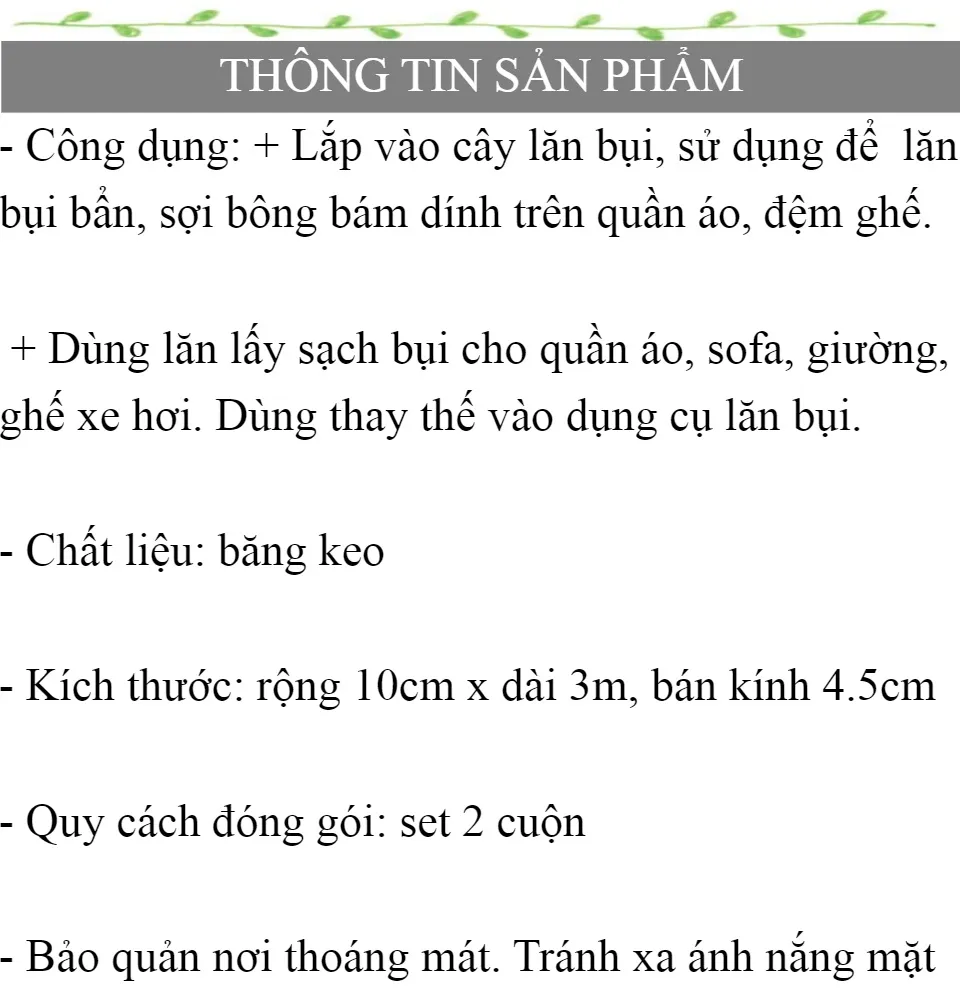 SET 2 LÕI LĂN BỤI THAY THẾ TANANKA - 1OCM X 3M