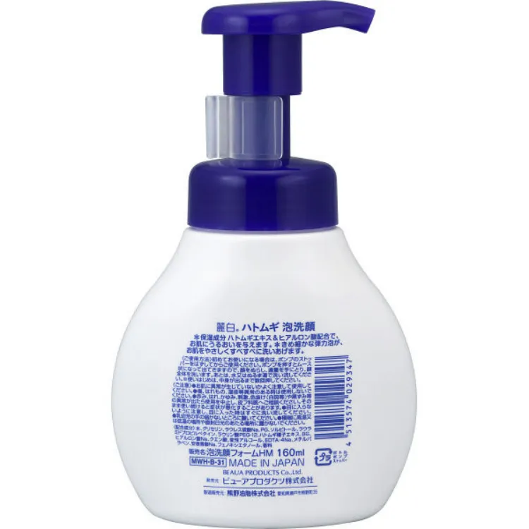 - Sữa rửa mặt Hatomugi loại tạo bọt - tức là sữa rửa mặt tạo bọt mịn sẵn chỉ ấn vòi ra dùng và tiết kiệm thời gian tạo bọt, làm sạch da.