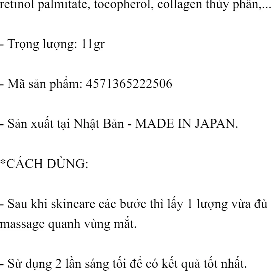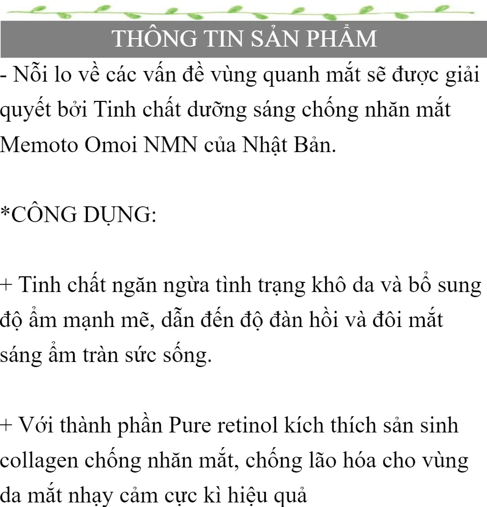 TINH CHẤT DƯỠNG SÁNG CHỐNG LÃO HÓA GIẢM NHĂN VÙNG MẮT MEMOTO OMOI NMN ( TUÝP 11GR ) - ĐÁNH BAY VÙNG THÂM MẮT BỌNG MẮT
