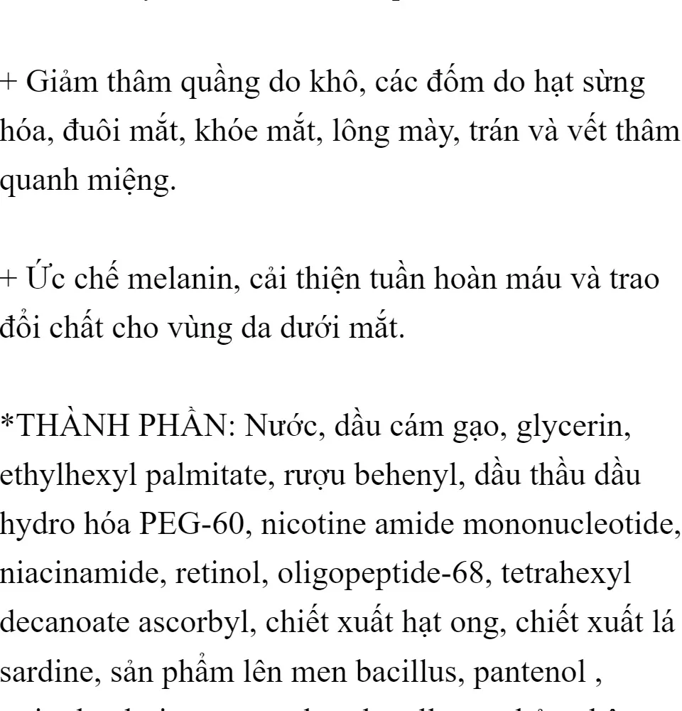 KEM DƯỠNG MẮT GIẢM QUẦNG THÂM VÀ NẾP NHĂN Ở MẮT MEISHOKU (TUÝP 30GR)