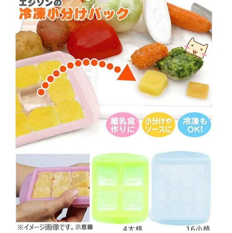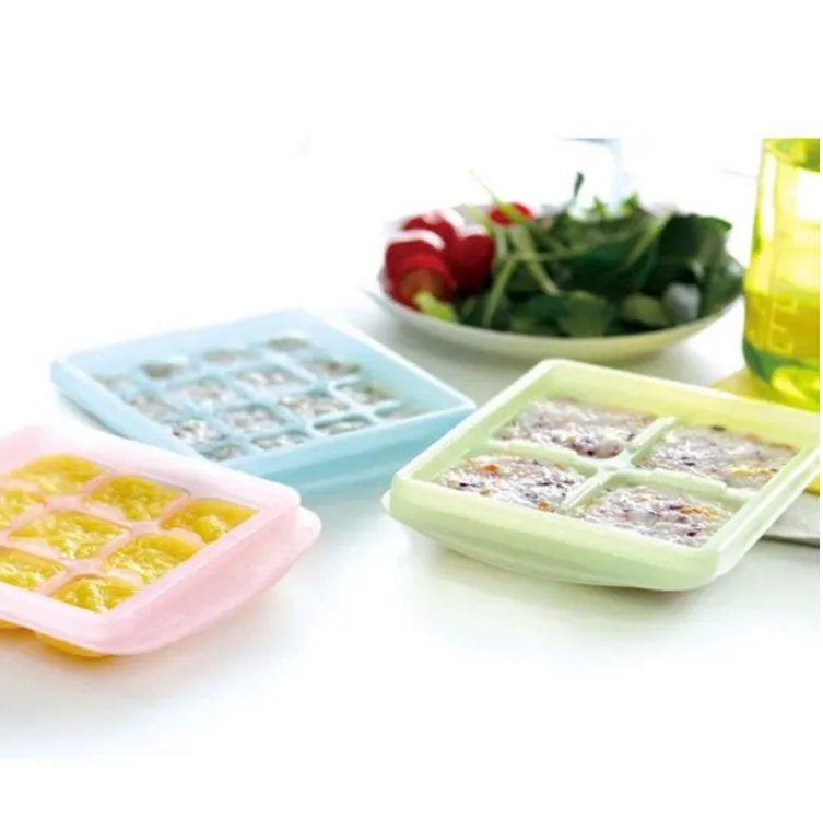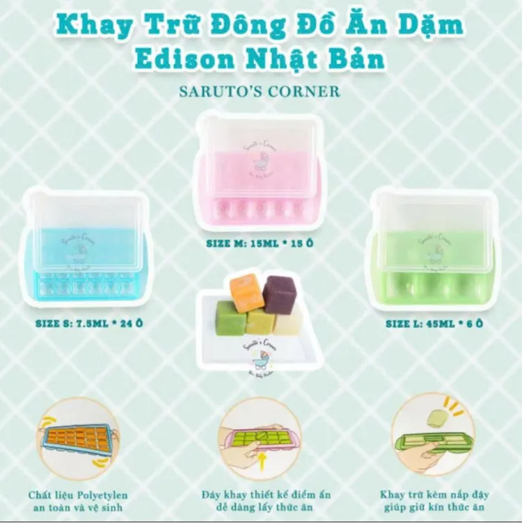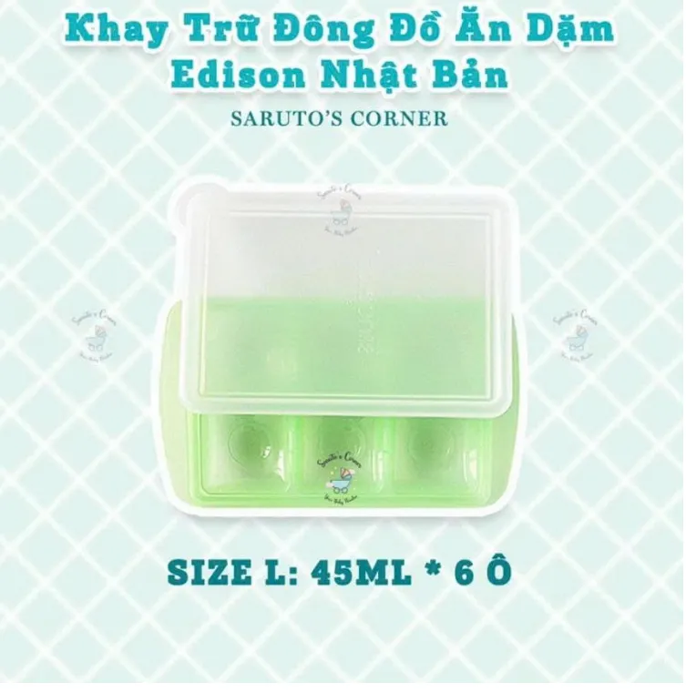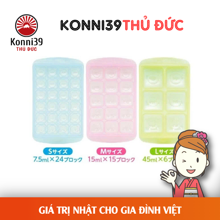 +Size L: 6 ngăn, mỗi ngăn 45ml. Trữ cháo, trái cây hoặc làm thạch, đậu hũ đều.