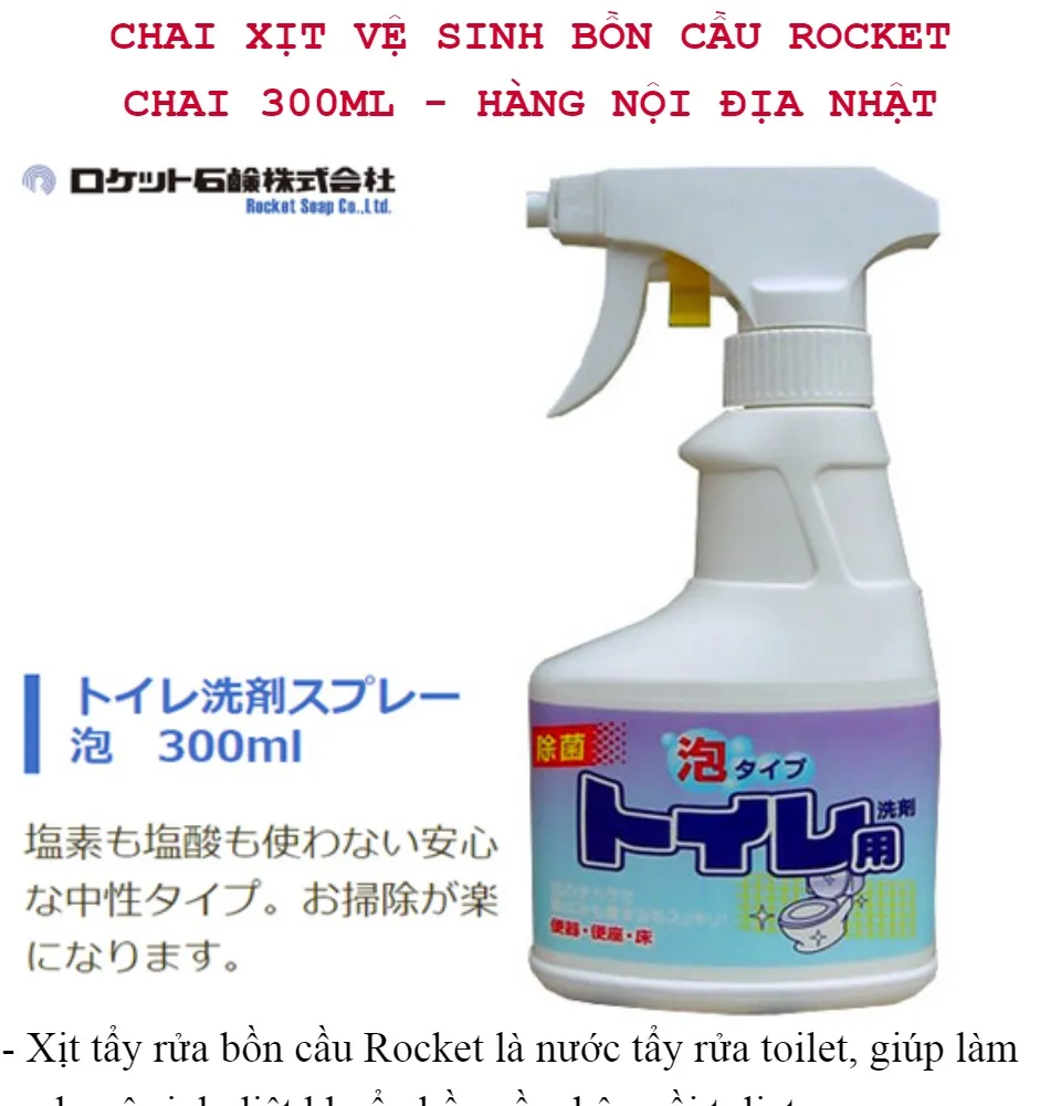 XỊT TẨY RỬA BỒN CẦU, NHÀ VỆ SINH ROCKET (CHAI 300ML) - HÀNG NỘI ĐỊA NHẬT