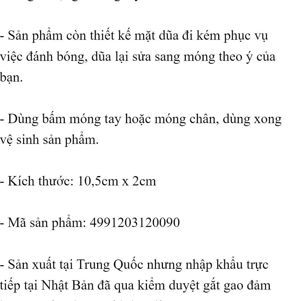 {"id":3672582,"name":"[1 CÁI - MÀU NGẪU NHIÊN] BẤM MÓNG TAY NGƯỜI LỚN","desc":"","content":"<h2 style=\"margin-left:0px;\">Mô tả sản phẩm<\/h2><figure class=\"image\"><img src=\"https:\/\/img.lazcdn.com\/g\/shop\/81b131fc7943cedc2e5ae687ad2e1131.png_2200x2200q80.png_.webp\"><\/figure><figure class=\"image\"><img src=\"https:\/\/img.lazcdn.com\/g\/shop\/5cef0dd436be28e0ceab7ecfdfee10bf.png_2200x2200q80.png_.webp\"><\/figure><figure class=\"image\"><img src=\"https:\/\/img.lazcdn.com\/g\/shop\/8a87258eb376bdf618fa891ad01885a3.png_2200x2200q80.png_.webp\"><\/figure><figure class=\"image\"><img src=\"https:\/\/img.lazcdn.com\/g\/shop\/11c2328d11306aa968ec1037678304c4.png_2200x2200q80.png_.webp\"><\/figure><figure class=\"image\"><img src=\"https:\/\/img.lazcdn.com\/g\/shop\/cf539eb4852c321e8b46dffa45ecd065.png_2200x2200q80.png_.webp\"><\/figure><figure class=\"image\"><img src=\"https:\/\/img.lazcdn.com\/g\/shop\/0e09ff96ff9e8f0b812eac94429b54ff.png_2200x2200q80.png_.webp\"><\/figure><figure class=\"image\"><img src=\"https:\/\/img.lazcdn.com\/g\/shop\/5d1149dfe0b407df25a878025f17cc85.png_2200x2200q80.png_.webp\"><\/figure><figure class=\"image\"><img src=\"https:\/\/img.lazcdn.com\/g\/shop\/dd7de811380c6947029690990e99d135.png_2200x2200q80.png_.webp\"><\/figure><figure class=\"image\"><img src=\"https:\/\/img.lazcdn.com\/g\/shop\/38a111ece26fe486cdc3a2e4fc3bdf88.png_2200x2200q80.png_.webp\"><\/figure><figure class=\"image\"><img src=\"https:\/\/img.lazcdn.com\/g\/shop\/569220e5a257d0965dd44ceca7fa99aa.png_2200x2200q80.png_.webp\"><\/figure><p style=\"margin-left:0px;\"> <\/p>","image_url":"https:\/\/www.konni39thuduc.com\/datafiles\/89665\/upload\/images\/shopee\/2026-04-14\/6c00e4814e818b467c3a6e0f27d39c5d.jpg?t=1776148299","image_thumb_url":"https:\/\/www.konni39thuduc.com\/datafiles\/89665\/upload\/thumb_images\/shopee\/2026-04-14\/6c00e4814e818b467c3a6e0f27d39c5d.jpg?t=1776152160","tags":[],"count_view":3,"seo_name":"1-cai-mau-ngau-nhien-bam-mong-tay-nguoi-lon","date_update":1776913814,"date_created_format":"","meta_title":"","meta_desc":"","meta_keyword":"","sku":"4991203168467 ; 4991203168481","code":"4991203168467 \/ 4991203168481","rate":0,"image_2_url":"https:\/\/www.konni39thuduc.com\/datafiles\/89665\/upload\/images\/shopee\/2026-04-14\/a53fc3fb6c48a17ebd03d2bff0998b02.jpg","image_2_thumb_url":"https:\/\/www.konni39thuduc.com\/datafiles\/89665\/upload\/\/thumb_images\/shopee\/2026-04-14\/a53fc3fb6c48a17ebd03d2bff0998b02.jpg","time_promotion":false,"date_sale":[],"status_order":5,"variant_options":[],"variants":[{"status_inventory":1,"status_order":5,"id":891205,"product_id":3672582,"sku":"4991203168467 ; 4991203168481","barcode":"","quantity":0,"quantity_alert":0,"price":39000,"price_discount":0,"images":[],"display_order":0,"is_point":"","point":"","vat":"","weight":"","variant_options":[],"variant_option_name":"","image":"","price_final":39000,"price_final_format":"39.000 đ","price_format":"39.000 đ","price_discount_format":"0 đ","percent_discount":0,"date_sale":[],"percent_discount_format":"- 0%","price_discount_final_format":"39.000 đ"}],"variantIdDefault":891205,"image_list":[{"image_url":"https:\/\/www.konni39thuduc.com\/datafiles\/89665\/upload\/images\/shopee\/2026-04-14\/6c00e4814e818b467c3a6e0f27d39c5d.jpg","image_thumb_url":"https:\/\/www.konni39thuduc.com\/datafiles\/89665\/upload\/\/thumb_images\/shopee\/2026-04-14\/6c00e4814e818b467c3a6e0f27d39c5d.jpg"},{"image_url":"https:\/\/www.konni39thuduc.com\/datafiles\/89665\/upload\/images\/shopee\/2026-04-14\/a53fc3fb6c48a17ebd03d2bff0998b02.jpg","image_thumb_url":"https:\/\/www.konni39thuduc.com\/datafiles\/89665\/upload\/\/thumb_images\/shopee\/2026-04-14\/a53fc3fb6c48a17ebd03d2bff0998b02.jpg"},{"image_url":"https:\/\/www.konni39thuduc.com\/datafiles\/89665\/upload\/images\/shopee\/2026-04-14\/ff50263269a929e1385b9b0b7878bf51.jpg","image_thumb_url":"https:\/\/www.konni39thuduc.com\/datafiles\/89665\/upload\/\/thumb_images\/shopee\/2026-04-14\/ff50263269a929e1385b9b0b7878bf51.jpg"},{"image_url":"https:\/\/www.konni39thuduc.com\/datafiles\/89665\/upload\/images\/shopee\/2026-04-14\/1482d0ac5ebac0eb69e544a479e24918.jpg","image_thumb_url":"https:\/\/www.konni39thuduc.com\/datafiles\/89665\/upload\/\/thumb_images\/shopee\/2026-04-14\/1482d0ac5ebac0eb69e544a479e24918.jpg"},{"image_url":"https:\/\/www.konni39thuduc.com\/datafiles\/89665\/upload\/images\/shopee\/2026-04-14\/320ab27125ebf9b32cd4a588b0e05439.jpg","image_thumb_url":"https:\/\/www.konni39thuduc.com\/datafiles\/89665\/upload\/\/thumb_images\/shopee\/2026-04-14\/320ab27125ebf9b32cd4a588b0e05439.jpg"},{"image_url":"https:\/\/www.konni39thuduc.com\/datafiles\/89665\/upload\/images\/shopee\/2026-04-14\/3864762f72f27c23effa13d163ed25f1.jpg","image_thumb_url":"https:\/\/www.konni39thuduc.com\/datafiles\/89665\/upload\/\/thumb_images\/shopee\/2026-04-14\/3864762f72f27c23effa13d163ed25f1.jpg"},{"image_url":"https:\/\/www.konni39thuduc.com\/datafiles\/89665\/upload\/images\/shopee\/2026-04-14\/7af3ebddf1662892dfcb32b7225f3252.jpg","image_thumb_url":"https:\/\/www.konni39thuduc.com\/datafiles\/89665\/upload\/\/thumb_images\/shopee\/2026-04-14\/7af3ebddf1662892dfcb32b7225f3252.jpg"}],"product_articles":[],"total_point_review":0,"link_youtube":"https:\/\/www.youtube.com\/embed\/","video_url":"","booking_url":"javascript:void(0)","file_url":"","config_panorama":[],"brand_name":"NoBrand","qr_code":"https:\/\/www.konni39thuduc.com\/1-cai-mau-ngau-nhien-bam-mong-tay-nguoi-lon","promotion_name":"","status_inventory_value":1,"status_inventory":"Còn hàng","price":false,"price_final":"39.000 đ","percent_discount":false,"price_discount":false,"company_logo":"https:\/\/www.konni39thuduc.com\/datafiles\/89665\/upload\/files\/logo%20konni%20th%E1%BB%A7%20%C4%91%E1%BB%A9c.png","company_name":"KONNI39 THỦ ĐỨC","company_email":"konni39thuduc@gmail.com","company_phone":"0842924468","company_address":"","company_fax":"","date_now":1776923565,"company_tags":["hàng