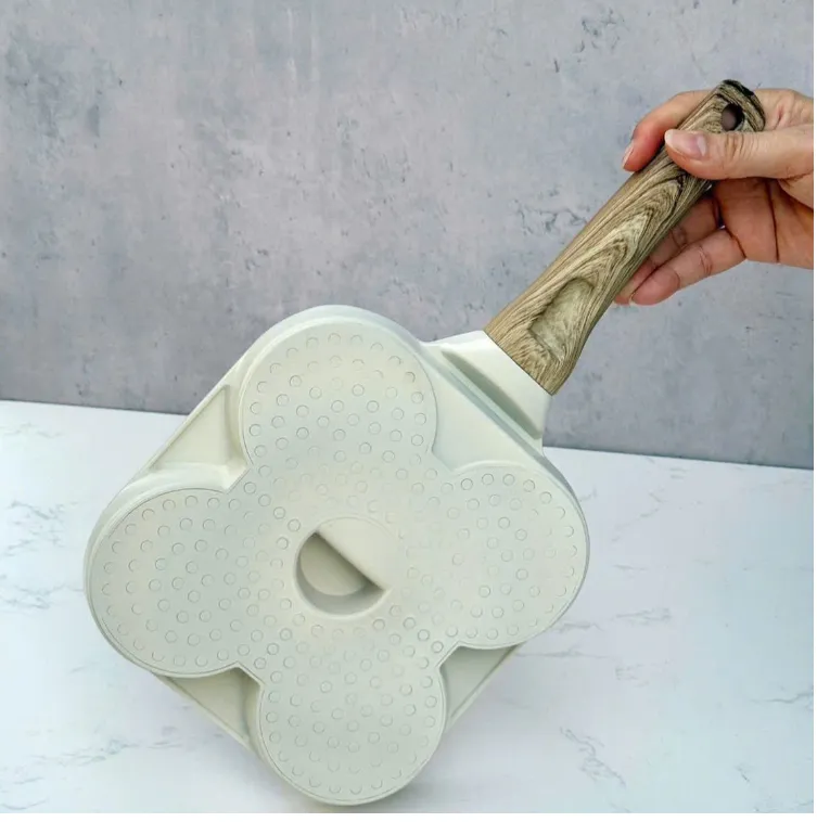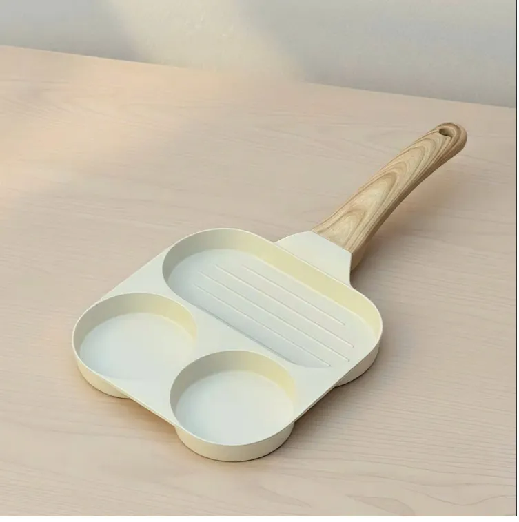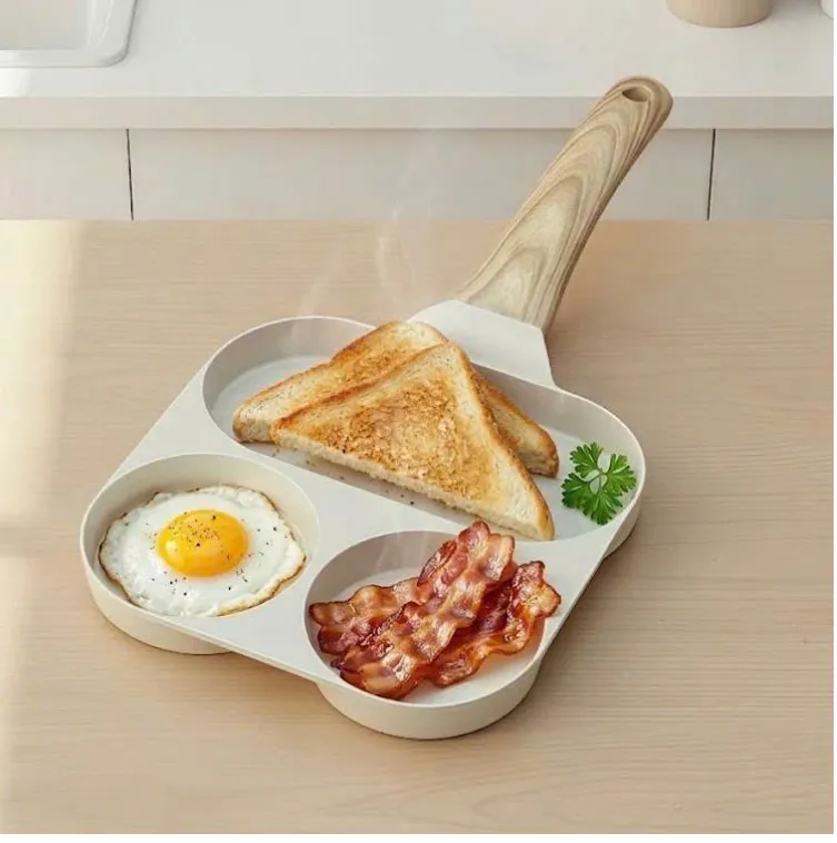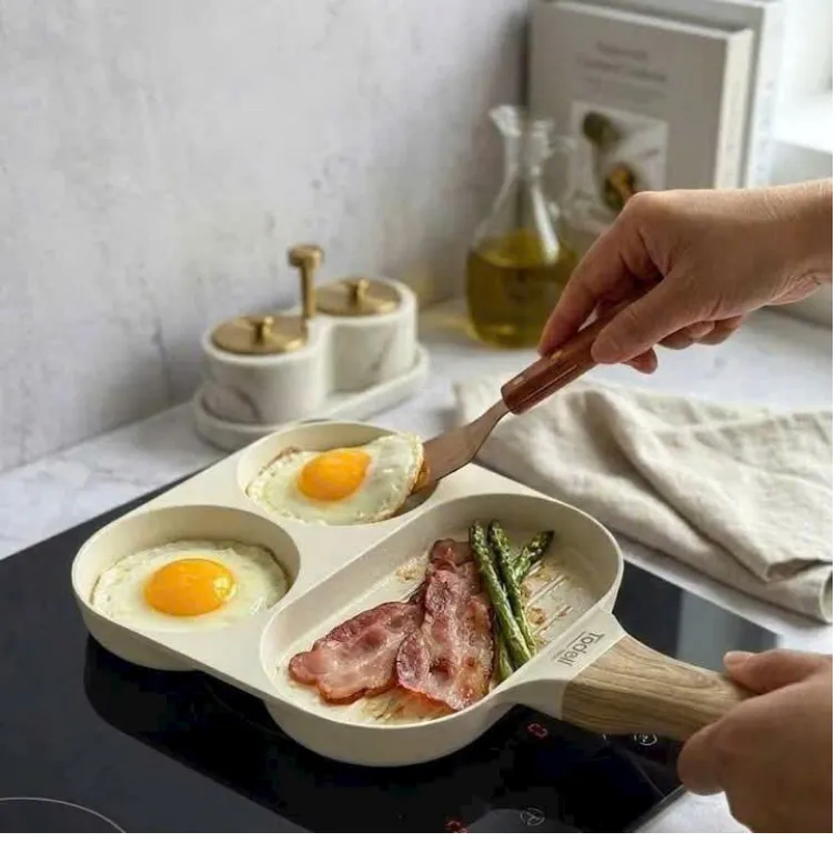 +Chảo được thiết kế chia 3 ngăn (2 ngăn tròn + 1 ngăn chữ nhật), có thể sử dụng để chế biến cùng lúc nhiều món ăn khác nhau rất tiện lợi; đặc biệt phù hợp để chế biến bữa sáng cho gia đình.
