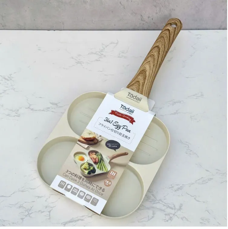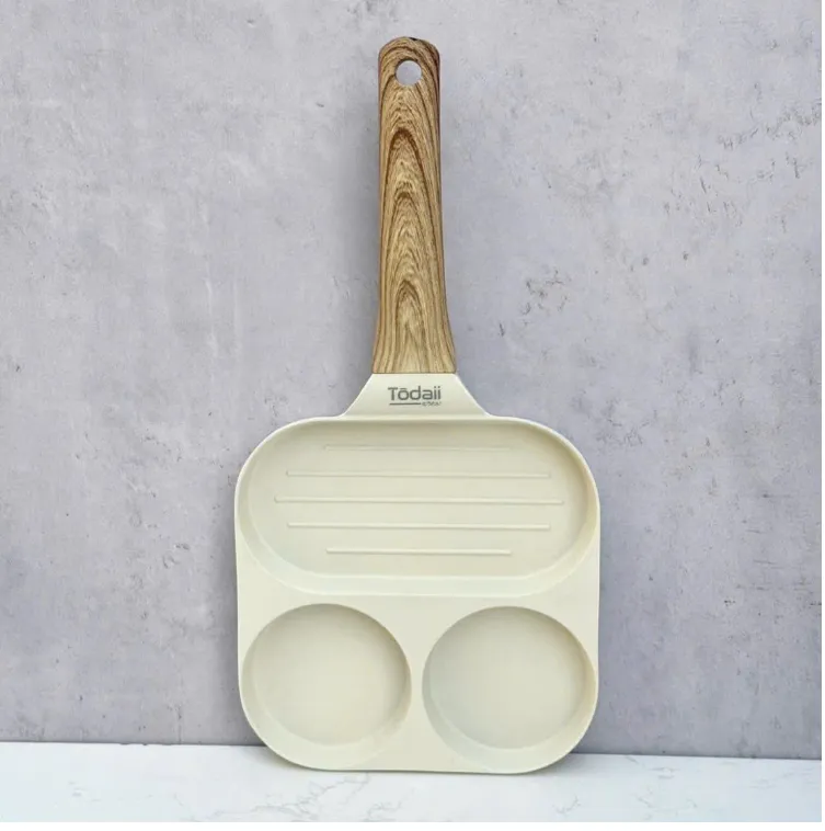 Chảo chiên chống dính Todaii được thiết kế chia 3 ngăn (2 ngăn tròn + 1 ngăn chữ nhật) giúp chế biến cùng lúc nhiều món ăn khác nhau rất tiện lợi; đặc biệt phù hợp để chế biến bữa sáng cho gia đình. Sản phẩm dùng được cho mọi loại bếp: bếp gas, bếp điện từ, bếp hồng ngoại, bếp điện...