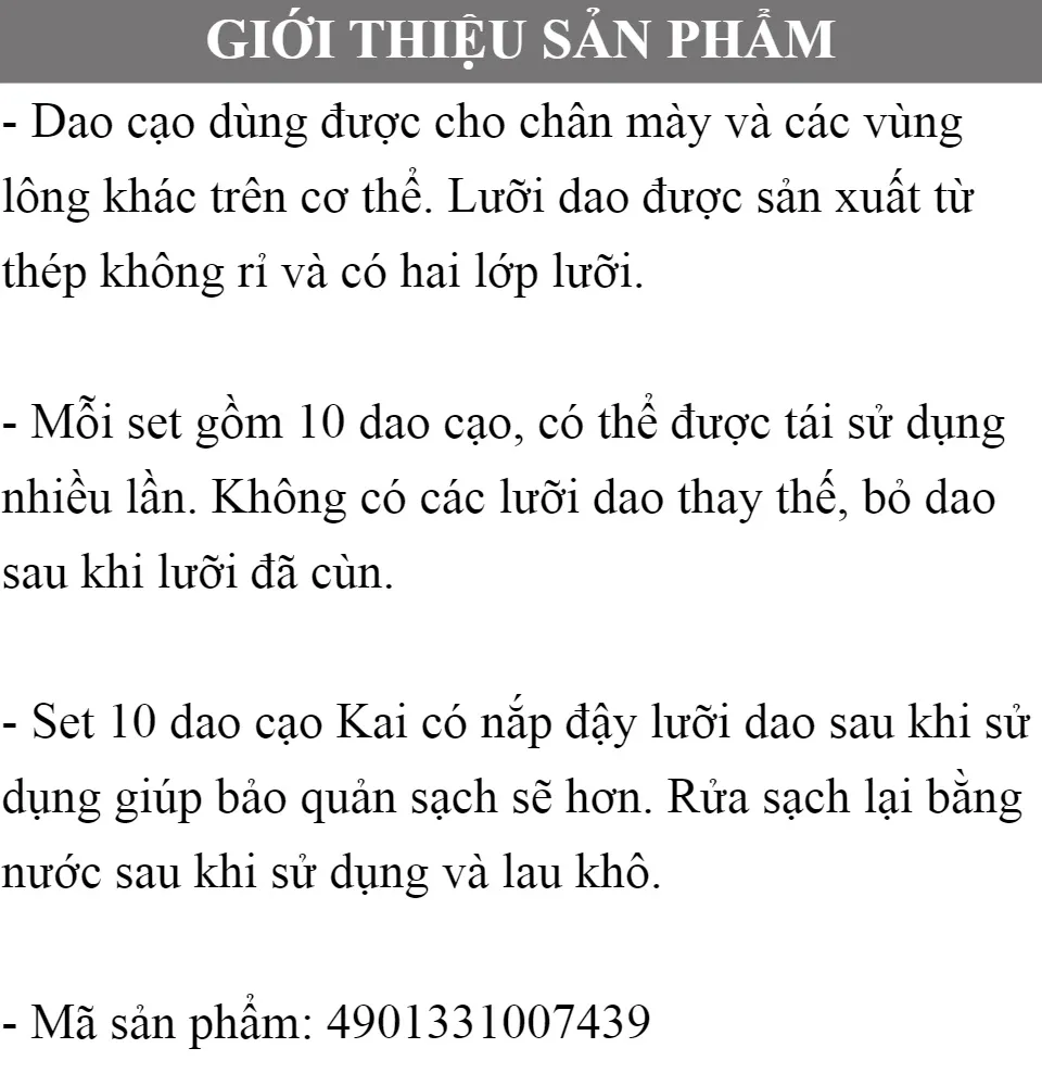 DAO CẠO LÔNG MÀY KAI NHẬT BẢN (SET 10 CÁI) - HÀNG NỘI ĐỊA NHẬT , dùng để tỉa chân mày và cạo lông.