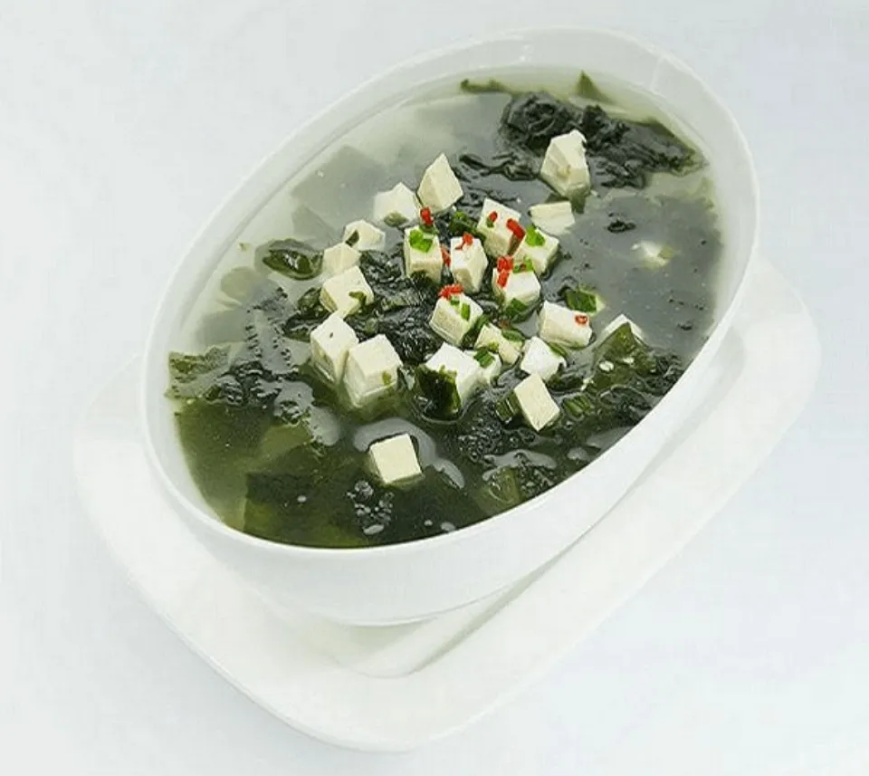 - Một bát canh rong biển ngọt mát với miếng đậu phụ mềm mịn, nhanh tan trong miệng, giòn dai sần sật của rong biển. Sự hòa quyện hài hòa mang đến một bữa ăn ngon và nhiều dinh dưỡng.
