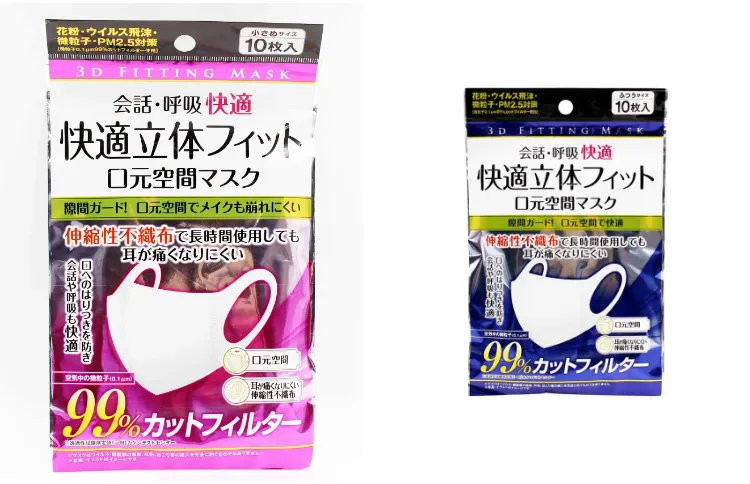 - Khẩu trang thiết kế dạng 3D Seiwa giúp hạn chế không bị dính sát vào miệng, môi, giúp không bị lem son môi, không bị bí thở khi sử dụng.