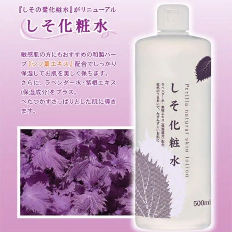 - Nước hoa hồng tía tô Dokudami Perilla Natural Skin Lotion 500ml được chiết xuất hoàn toàn từ tía tô với thành phần chứa hàng loạt chất dinh dưỡng tốt cho làn da như vitamin A, C và các khoáng chất như Canxi, sắt và phốt pho…Lá tía tô có tác dụng tái tạo làn da, cải thiện sắc tố, làm sạch tận sâu trong lỗ chân lông, sát khuẩn, giảm sưng đỏ vết mụn hiệu quả và tăng cường sức đề kháng cho làn da.