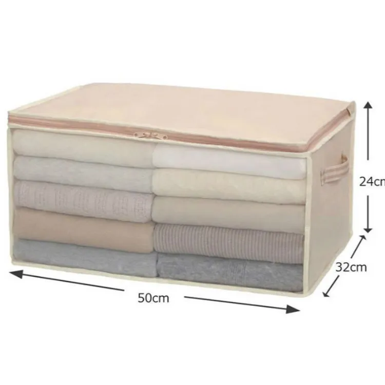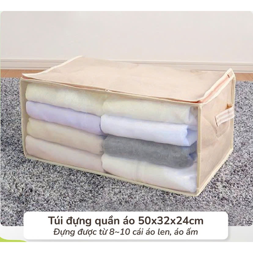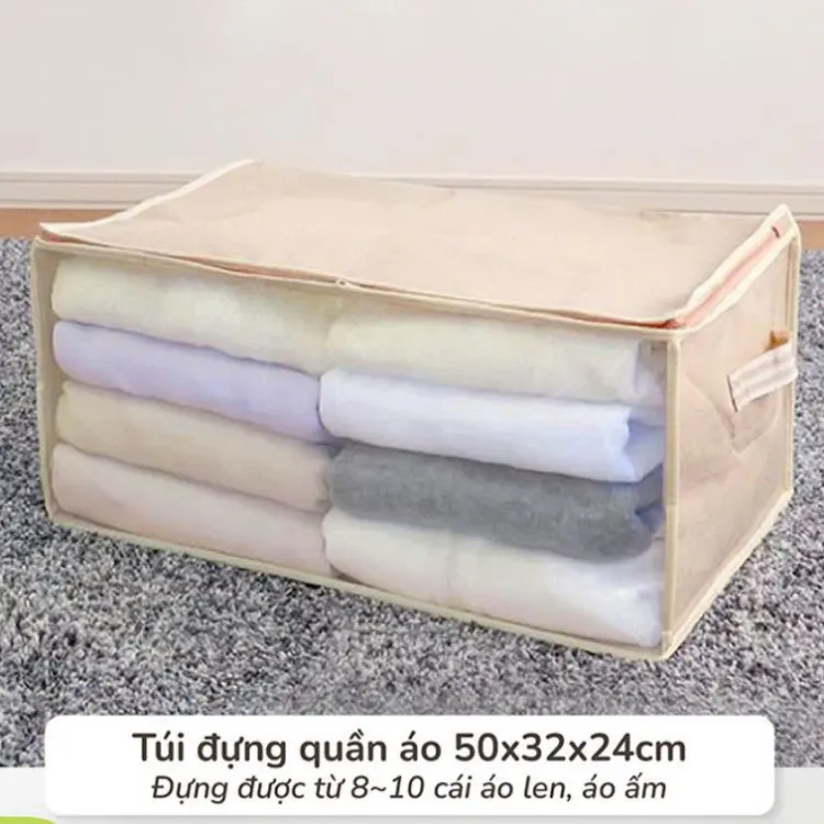 -Túi dựng có nắp trên mở và khóa kéo mở ở cả hai bên, giúp bạn dễ dàng cho đồ vào và lấy ra.. Bảo quản được từ 8~10 cái áo len, áo ấm.