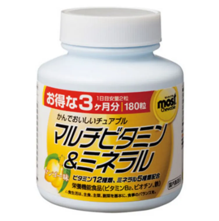 - Viên uống ngậm bổ sung Vitamin và Khoáng chất: vị xoài ( lọ 180 viên - 2 viên / ngày - dùng sau bữa ăn 30p ): tăng cường 11 loại vitamin và 6 khoáng chất tổng hợp ( kẽm, magie, sắt, kẽm, đồng, selen) , tăng cường sức đề kháng, cải thiện vấn đề của tóc, Bổ sung năng lượng hoạt động. DÙNG CHO TRẺ 3 TUỔI TRỞ LÊN VÀ NGƯỜI LỚN.