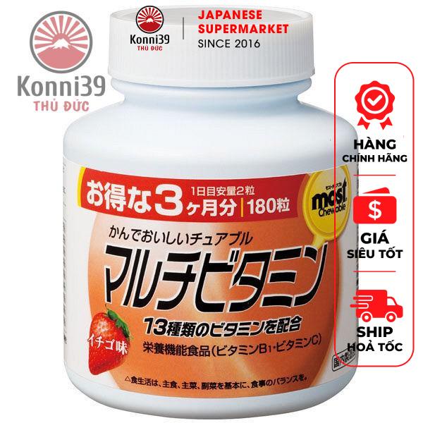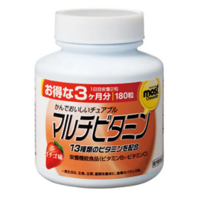 - Viên uống bổ sung Vitamin tổng hợp Orihiro vị dâu (lọ 180 viên - 2 viên/ ngày- dùng sau bữa ăn 30p): bổ sung Vitamin A, Vitamin B1, Vitamin B2, Vitamin B6, Vitamin B12, Niacin, Vitamin C, Vitamin D, Vitamin E, Vitamin K, axit folic, biotin, axit pantothenic. Giúp tăng cường sức đề kháng, bảo vệ cơ thể toàn diện, DÙNG CHO TRẺ 3 TUỔI TRỞ LÊN VÀ NGƯỜI LỚN.