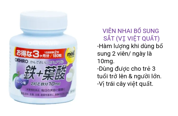 VIÊN NHAI BỔ SUNG SẮT ACID FOLIC ORIHIRO (VỊ VIỆT QUẤT - HỘP 180 VIÊN)