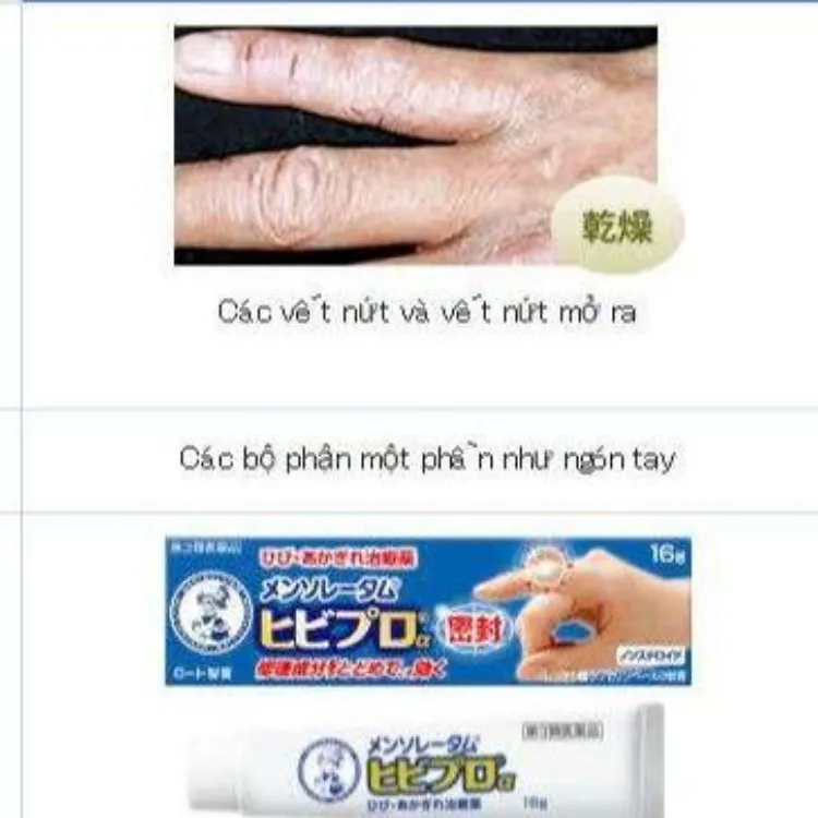 -Vết nứt, nứt nẻ, sần sùi ở đầu ngón tay và lòng bàn tay, nổi mẩn ngứa, sần sùi ở khuỷu tay, đầu gối và gót chân.